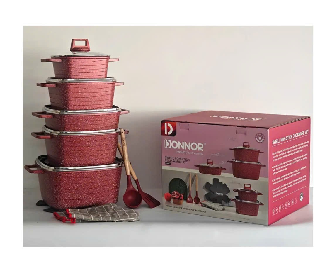5-Piece Non-Stick Cookware Set with Stone Coating High-Quality Natural Granite Aluminum Alloy Fast Heat Transfer, Excellent Heat Retention, Safe For Health
