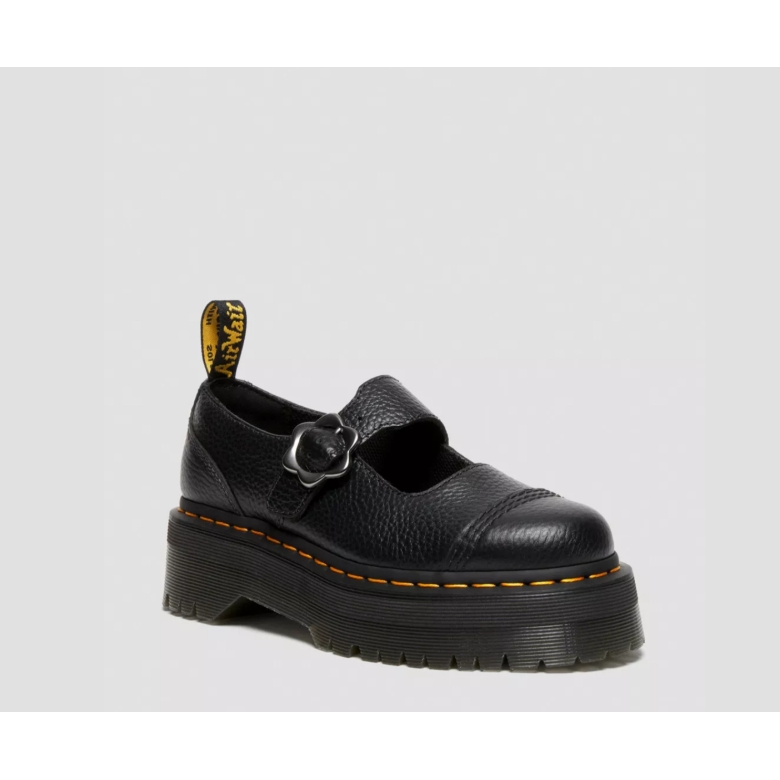Another twist on the classic Mary Jane. The Addina features a Quad sole with grooves secured by yellow stitching to mark each step. Wrapped in sturdy yet soft milled Nappa leather with triple stitching on the toe. The strap is secured with an adjustable flower-shaped buckle, and we've signed off the back of the shoe with our classic black and gold heel loop. The shoe's streamlined shape provides a comfortable, snug fit that you can wear straight out of the box. Platform height - Platform height: 1 1/2 in; Heel height: 1 7/8 in Shoe soles - Thinner and more tapered in shape. MATERIAL Milled Nappa leather - A durable and firm textured leather that is both soft and supple.
