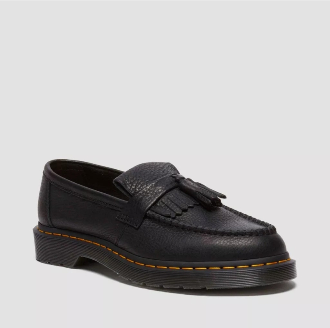 Dr. Martens Adrian Yellow Stitch Ambassador Leather Loafers 31997001 Product code 31997001 We've reimagined our classic Adrian fringed loafers using luxurious Ambassador leather, a textured material with an oiled finish and soft grip that makes slipping into the original Dr. Martens silhouette effortless. The sole is secured with DM's yellow welt stitching and marked with our signature grooving pattern.