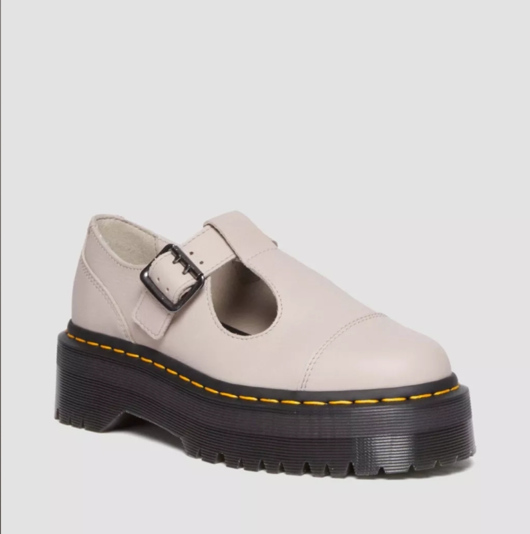 Live bigger in softer leather. We’ve reimagined the Bethan T-bar shoe in supple Pisa leather, ready to wear right out of the box. The shoe stands on our grooved Quad sole, secured by signature yellow welt stitching. Equipped with an adjustable gunmetal buckle. Pisa is a medium-weight milled Nappa leather with a soft grip and a richly pigmented wax finish. Stacked higher with a chunky groove – the Quad sole is built to empower. Seen on our towering Jadon boots - for those who aren't afraid to stand tall Construction - Made with heat-sealed Goodyear welt seams at 700°C and reinforced with our signature welt stitching Platform height - Platform height: 1 1/2 in Heel height: 2 in Foot - Slimmer and tastier foot shape slimmer foot