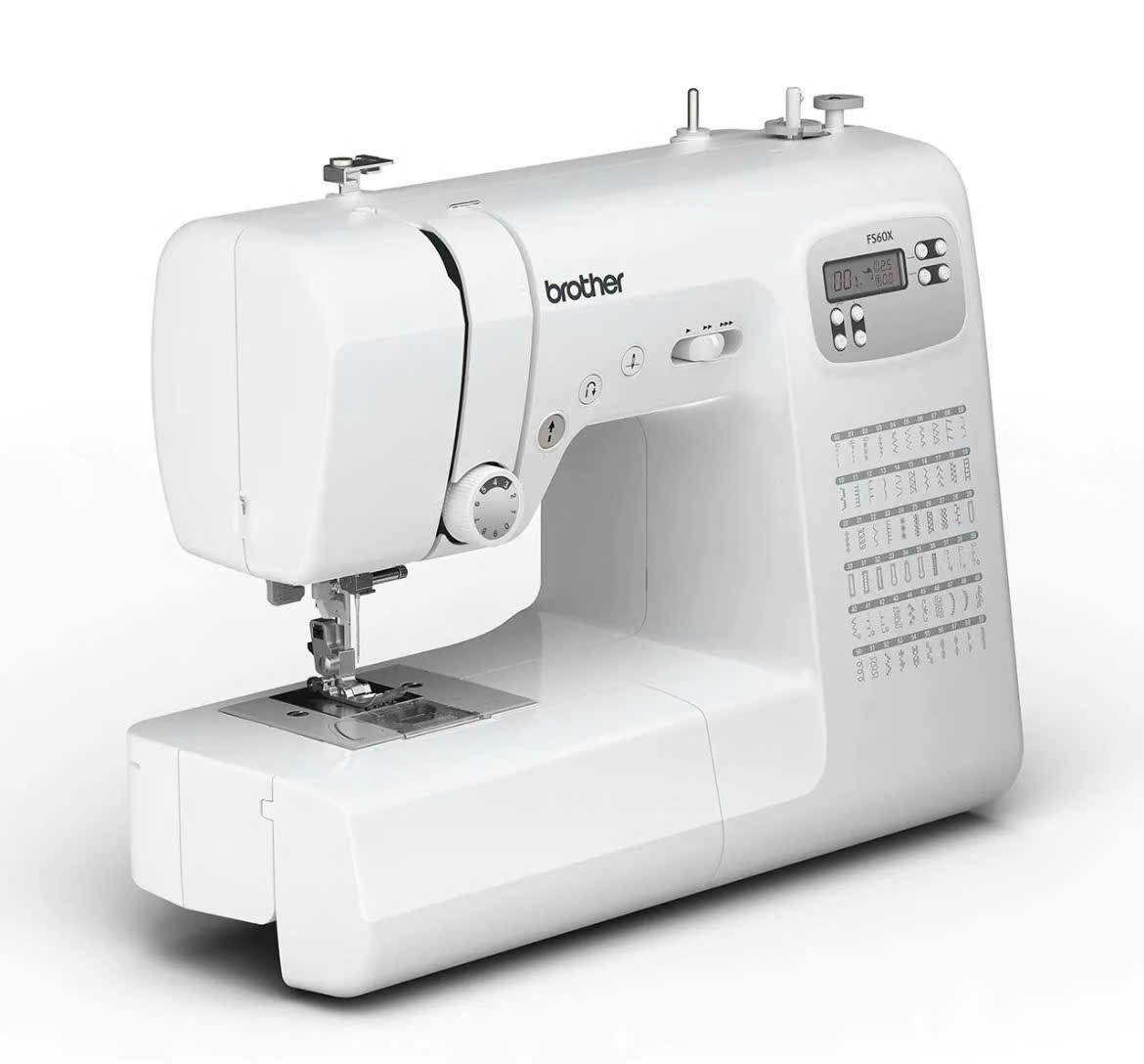 Brother FS60X Electronic Sewing Machine - Includes a sewing machine carrying bag. Stitches: Includes 60 built-in sewing stitches and 7 one-step buttonholes. Performance: Offers a maximum sewing speed of 750 stitches per minute with adjustable speed control. Convenience: Equipped with an automatic needle threader and a computerized LCD display for selecting stitches. Design: Features a large workspace and a sturdy frame capable of stitching through 8 layers of denim. Weight & Dimension Specifications Specification Details Source Machine Net Weight 4.8 kg – 5.4 kg Gross Weight (with Box) Approx. 6.3 kg – 6.5 kg Machine Dimensions 413 x 171 x 310