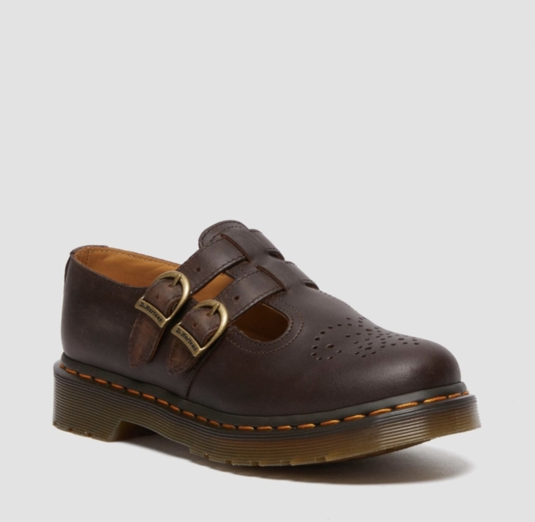 Dr. Martens 8065 Ambassador Mary Jane Shoes 30793292 We've reimagined our classic 8065 Mary Jane using luxurious Ambassador leather, an acrobatic material with an oiled finish and soft grips that make slipping into the original Dr. Martens silhouette effortless. The sole is secured with DM's yellow stitching and marked with our signature groove pattern. The strap is fitted with an adjustable gold buckle. Ambassador is a heavy, oily leather that has been tousled to enhance its character. Clean with a damp cloth and care for with Dr. Martens Wonder Balsam The DMS sole is the foundation of Dr. Martens construction. The two-tone PVC sole is marked by our signature grooves and our unique tire tread pattern.