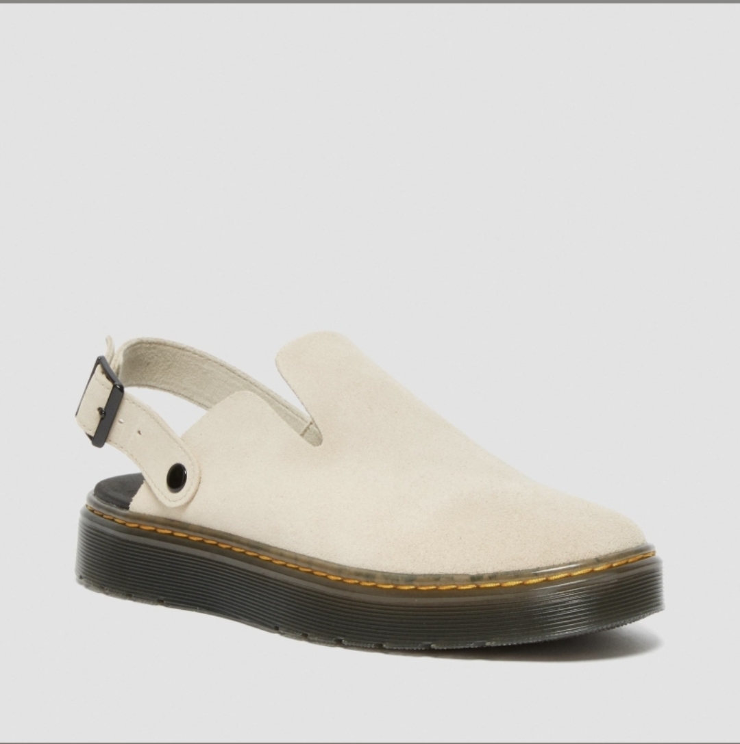 Perfect for summer. Built for every season. Relax with our Carlson sandals. Easy to wear and easy to remove with a movable strap, so it can be worn as a slip or around the ankle. The flat vibe sole keeps things at a perfect level of comfort wherever they are. soft E.H. Suede completes the look with smooth texture. Eh Suede is a classic leather with a smooth texture when touching our mules runs a bit small, we recommend sizing the leg bed - wider and more rounded toe shape