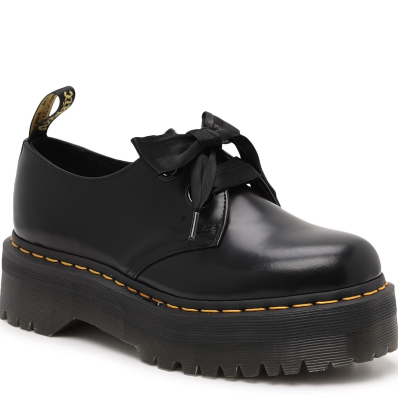 Product Description Dr. Martens Holly Platform Oxford - For women Add a touch of personality to your bespoke style with Dr. Martens' Holly sole Oxford shoes. These lace-up shoes feature thick satin laces and a chunky sole for an eye-catching look. CODE: 25234001 HOLLY WOMEN'S LEATHER PLATFORM SHOES