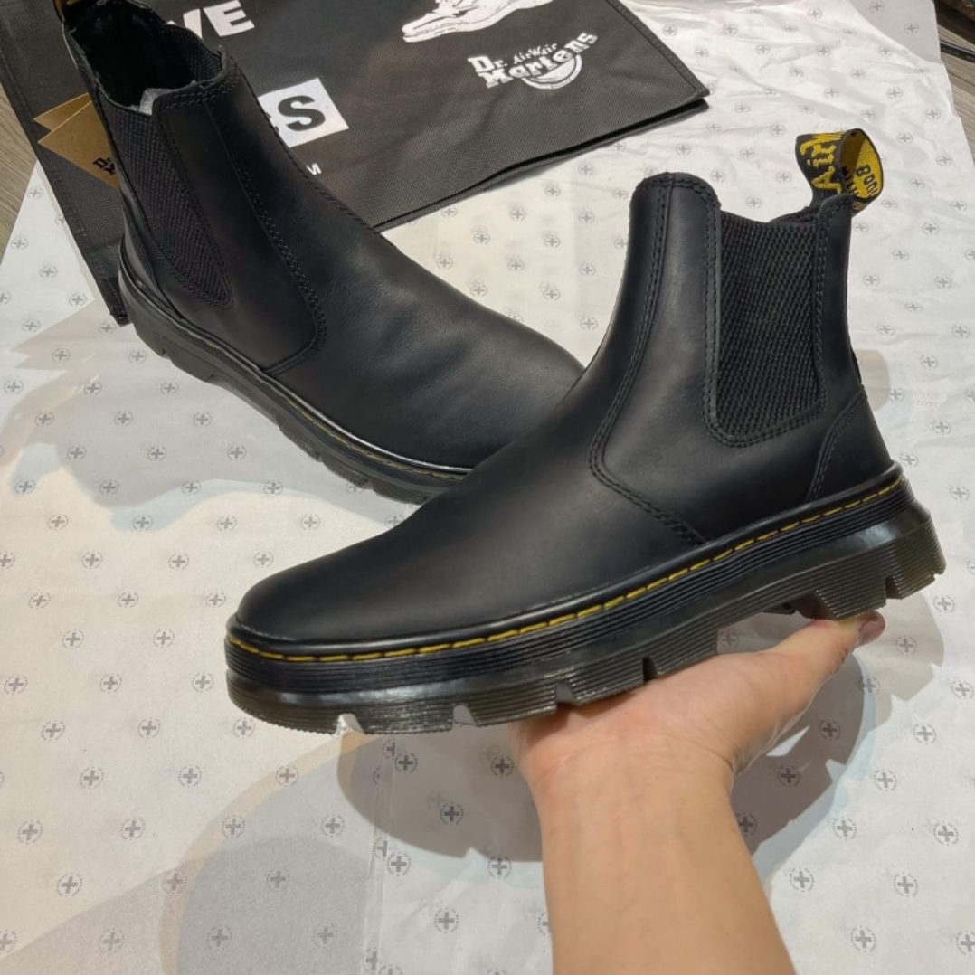 Docs leathers. Docs silhouettes. New lightweight construction. In our Casual collection, we rework our classics through a contemporary lens. These Chelsea boots are built on rugged Tract outsole with all our core DNA in place: yellow stitching and a scripted heel loop. Wyoming is a rugged leather with a subtle grain and oily finish. Clean with a damp cloth and care with Dr. Martens Wonder Balsam Made with a comfortable, durable cemented construction
