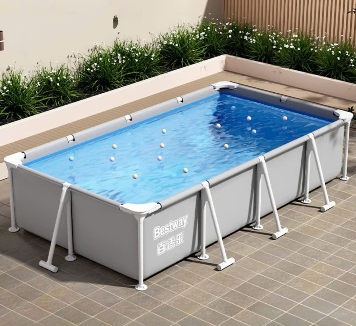 KAW Foldable Metal Frame Swimming Pool - Super Durable, Spacious, Kids Can Enjoy Summer Fun. Beat the summer heat with the KAW metal frame swimming pool convenient foldable design, quick assembly in just a few minutes, no tools needed! Sturdy steel frame, rust-resistant, and strong - providing absolute peace of mind during use High-quality PVC material, non-toxic, safe for children, durable and long-lasting Spacious capacity, enough for the whole family or multiple children to play together every day. Foldable design, easy to store - convenient for picnics and travel. Convenient drain valve - quick water drainage, easy cleaning. Elegant colors, modern design suitable for any space from garden to balcony.