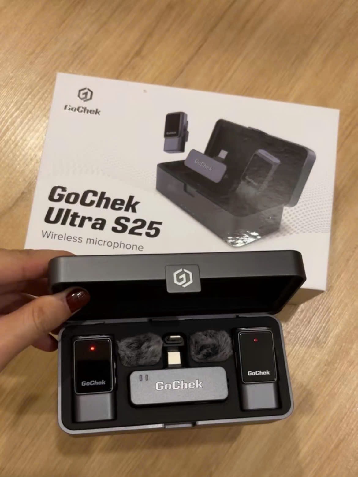 GoChek Ultra S25 Wireless Microphone - Al Noise Cancellation Technology, Automatic Sound Balancing, Integrated Dual Jacks, 42-Hour Battery Life, 250m Range, Compatible with All Phones, Pocket 3, and Tablets