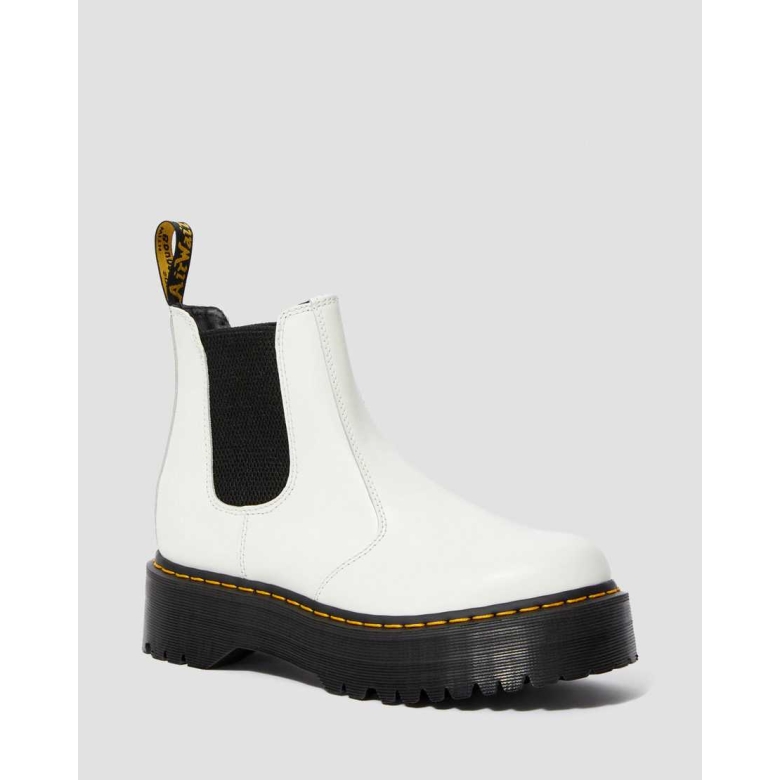 Chelsea boot was produced in the 70s, but the actual style dates back to the Victorian era. Today, the 2976 Chelsea boot is a slick, uncompromisingly fashion-forward look for all genders — and with a sure fit and an easy-on, easy-off elasticized gusset, it's a versatile boot that works with everything. This season, the boot gets an empowering boost from an aggressive, 1 1/2 inch platform sole — and now comes in show-stopping white Smooth leather. Elastic gussets Pull-on Chelsea boot style Constructed on the iconic and comfortable Dr. Martens air-cushioned sole, with a commando tread Built to last with a durable Goodyear welt Made with all the classic Docs DNA, including grooved sides, heel-loop and yellow stitching Made with Smooth, the original super-durable Dr. Martens leather Platform height: 1 1/2 in; Heel height: 1 7/8 in