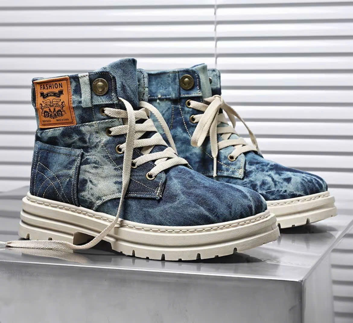 Martin Boots, For Men, British Style Trend, Easy to Match, Anti-Slip and Wear-Resistant, Work Shoes, Fashionable Denim Material, New Arrivals Autumn 2025