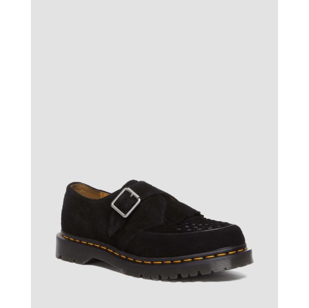 "DESERT OASIS SUEDE MONK CREEPER PACK" with a group culture style. Monk strap shoes with an eye-catching woven vam p design. Dr. Martens paid attention to every detail, down to the quilted vamp made from the same mat erial as the upper. The upper is made from Desert Oasis leather suppli ed by Charles Fstead, a tannery based in Leeds, U K. Accented with black interwoven stitching. Monk straps with shiny silyer hardware allow for ad justable fit. The outsole is a sturdy smoked BEN sole. The edging is finished with yellow stitching. *Depending on your screen, there may be differenc es in tone and texture compared to the actual prod uct. *Due to the nature of leather, there may be uneven coloring or wrinkles.