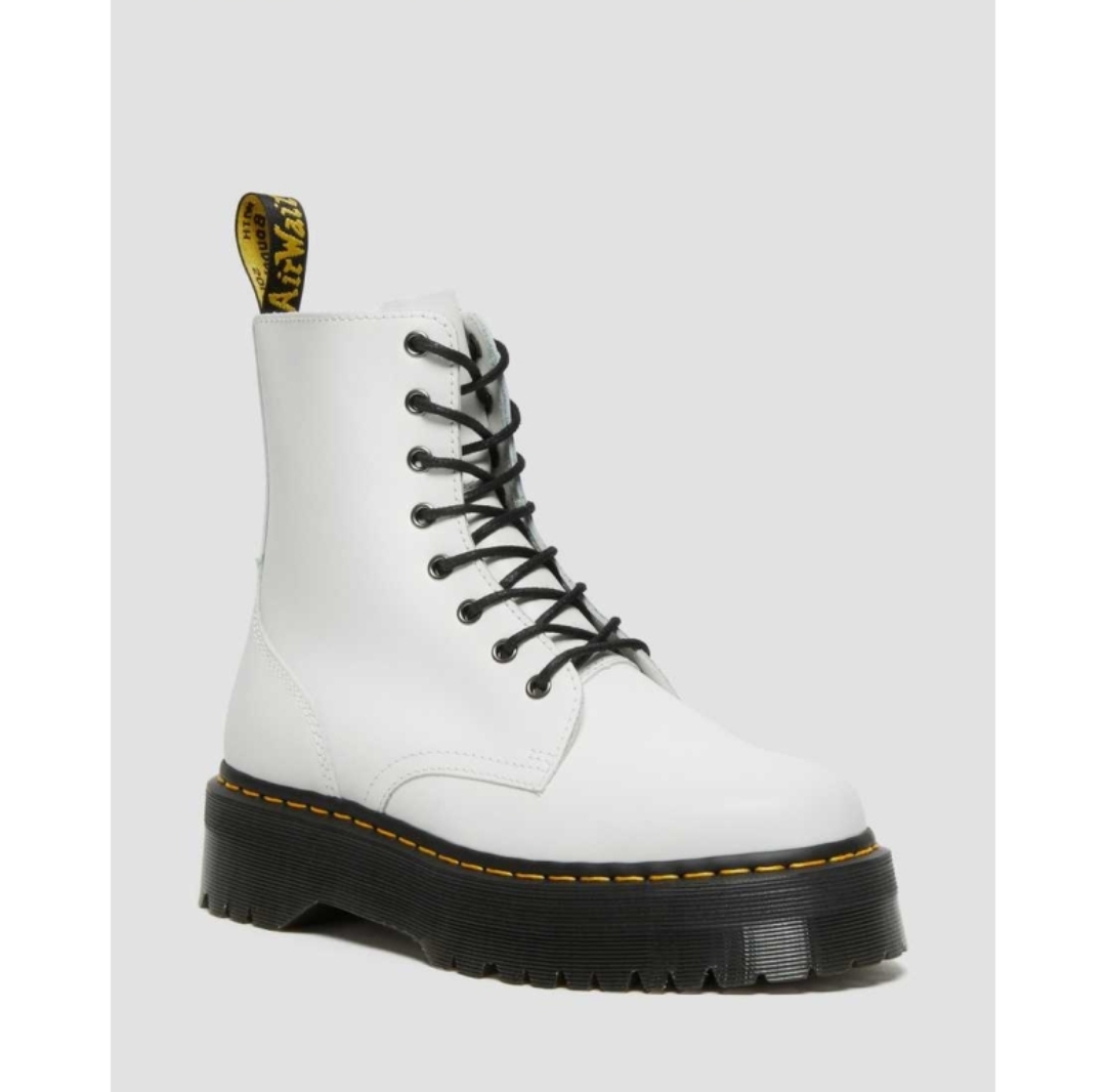 When Jadon boots left the production line in 2013, we knew we had created something special. Over 60 years of our unmistakable DNA, upgraded on a more bold platform base. The 8-eye silhouette, crafted from DM's polished antique leather and stacked on PVC outsole. Jadon boots keep our original details: Fixed by yellow border stitching and tagged with Airwair heel ring A fearless improvement of our 8-eye boots - lifting the silhouette to a new level unacceptable. Stand higher. Feeling bolder than polished Smooth is the skin type Dr. Original Martens: Super durable, with a polished smooth surface tank with a high gloss foundation of the original DM. 2 inch high with sturdy commando teeth - quad sole is built to increase strength. To be seen on our famous Jadon boots - for those who are not afraid to stand upright zipper inside the ankle texture - made of welded Goodyear welded lines at 700°C and reinforced by our signature seam height - Height Platform: 1 1/2 in; Footbed inch height - wider and more rounded toe shape