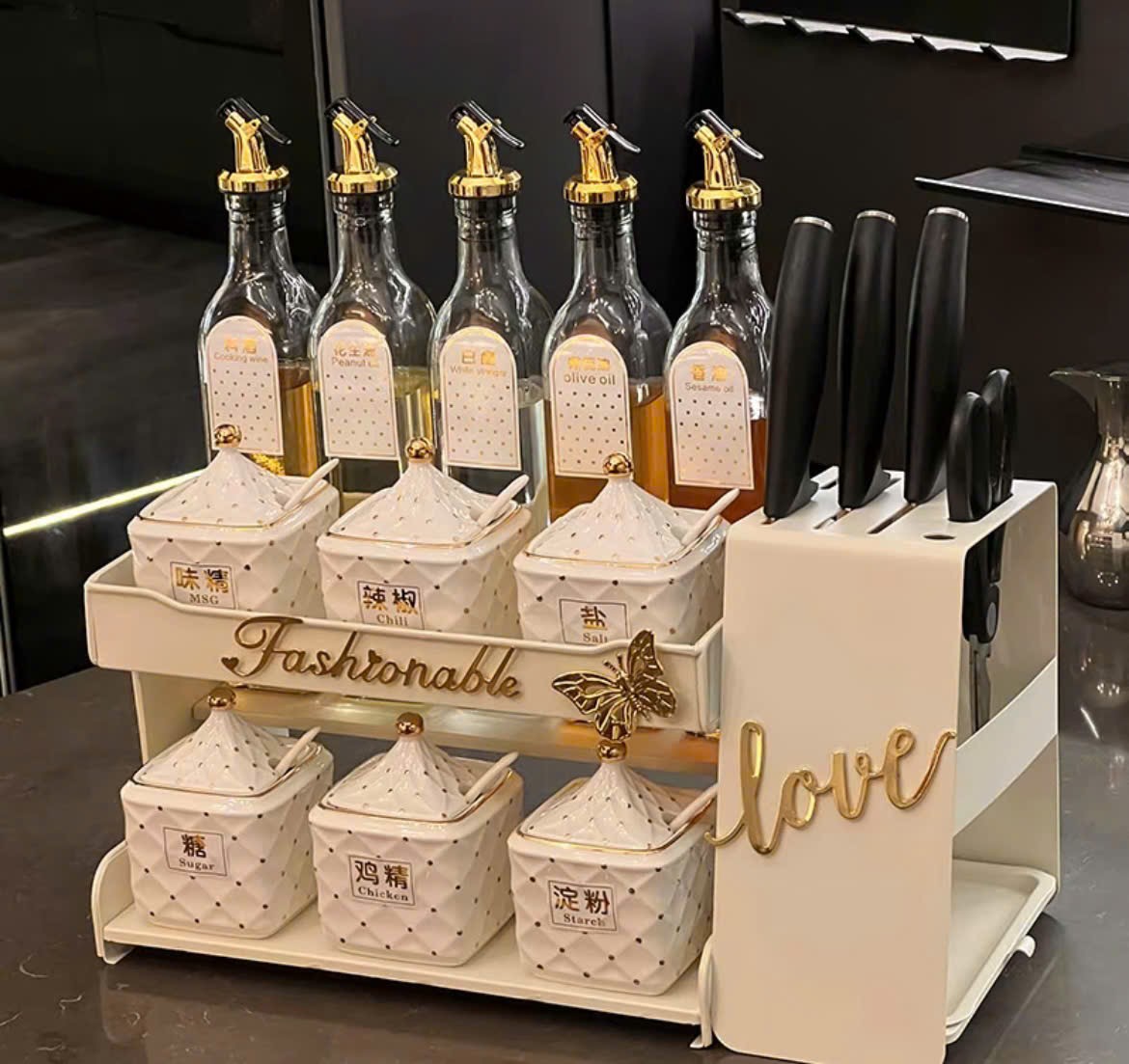 KALADIN Polka Dot Spice Rack High-End - Modern and Elegant Spice Container Set for Your Kitchen