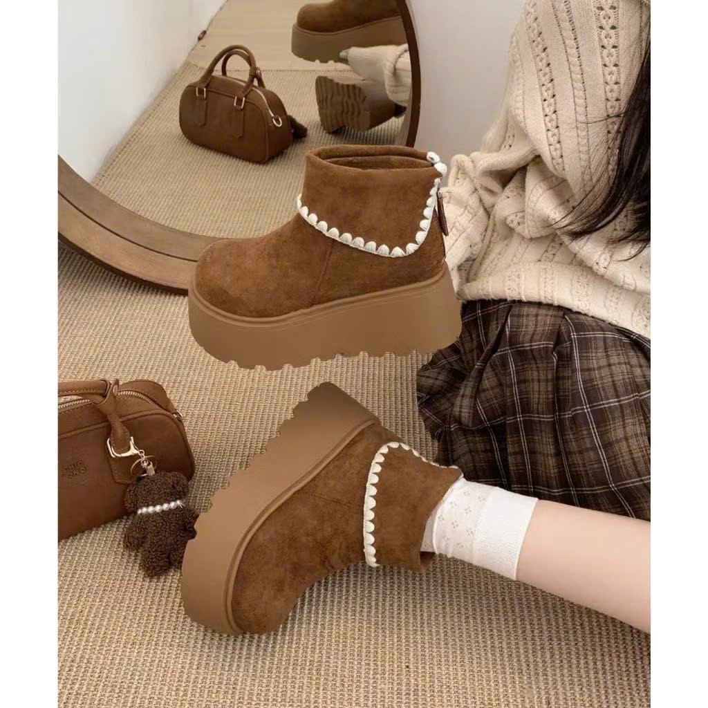 High-end women's boots with suede lace-up mid-calf platform FLOWER