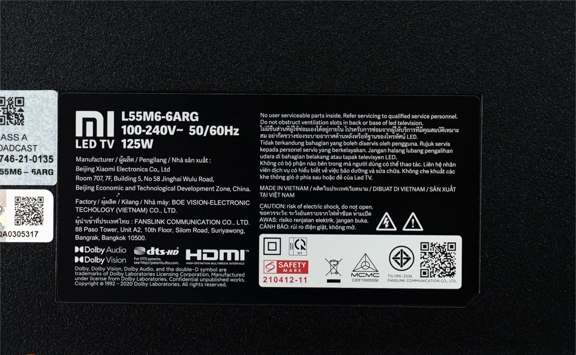 | Speaker technology | 20 W, Dolby Audio, DTS HD |