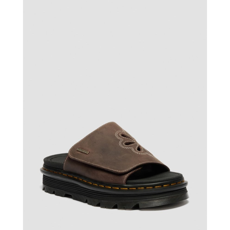 Crafted from heavy Crazy Horse leather, our Zebzag Slide is designed to look aged right from the first step. Its textured finish only improves with time, becoming distinctive with each wear. The wide strap is detailed with floral cutouts, contrasting white stitching, and playful embroidery that stands out against the sturdy leather. Set atop the chunky Zebzag sole, it's lightweight, bouncy, and cushioned with our SoftWair footbed for all-day comfort. Product features Construction - Net Fit is a type of structure where the base is glued on and heat-welded via a spacer. Platform height: 1 in; Heel height: 1 1/4 in Foot sole - Toes are wider and rounder.
